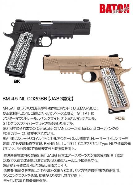 BATON airsoft CO2GBB ガスガン BM-45 NL CO2GBB BK FDE CO2ガスハンドガン 18歳以上対象 tb4580707972443