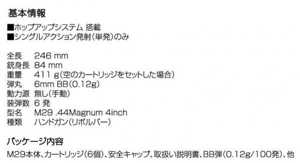 マルイ エアコッキングガン M29 .44マグナム 4インチ ブラックモデル 10歳以上対象 tb4952839137050